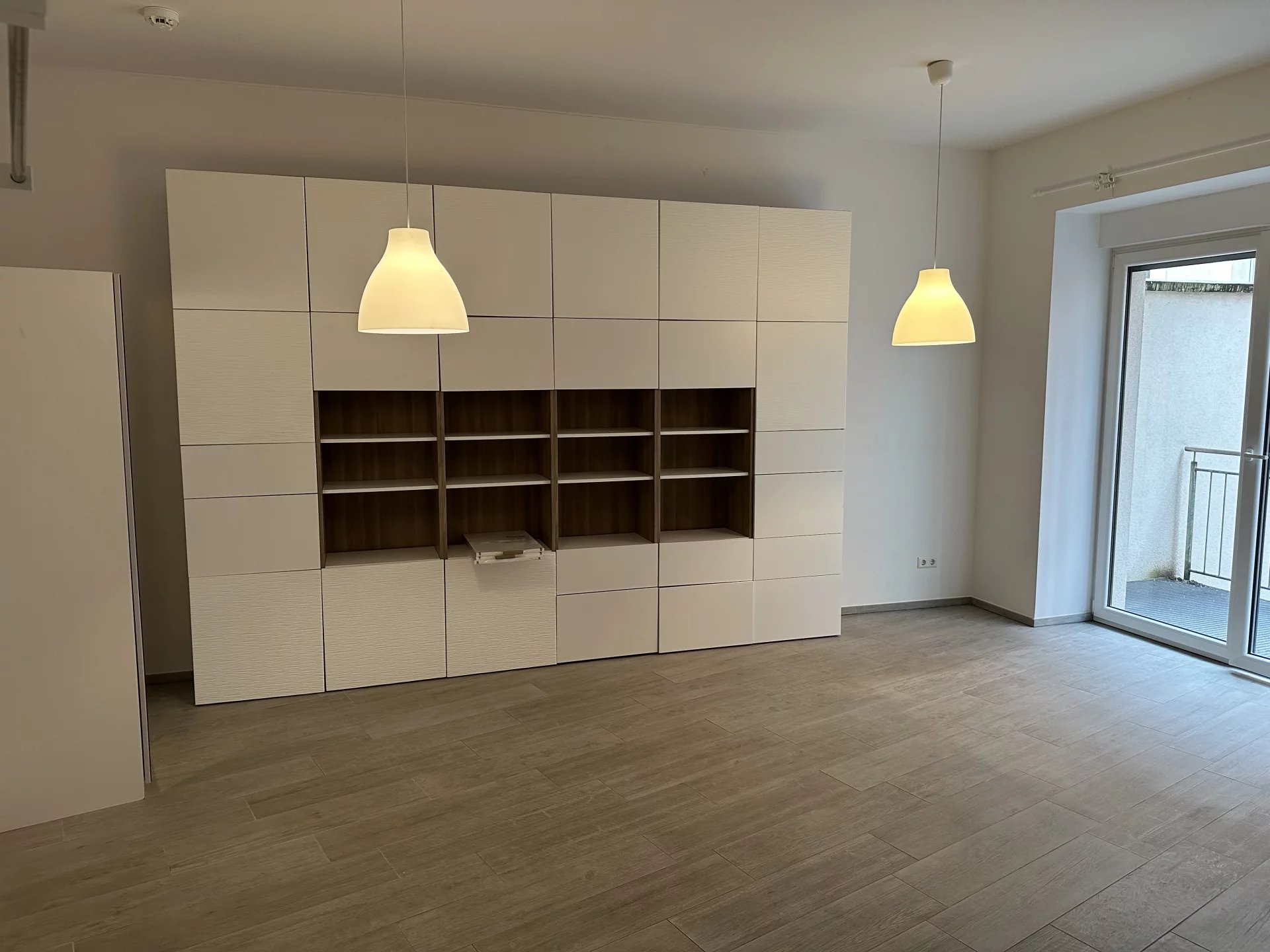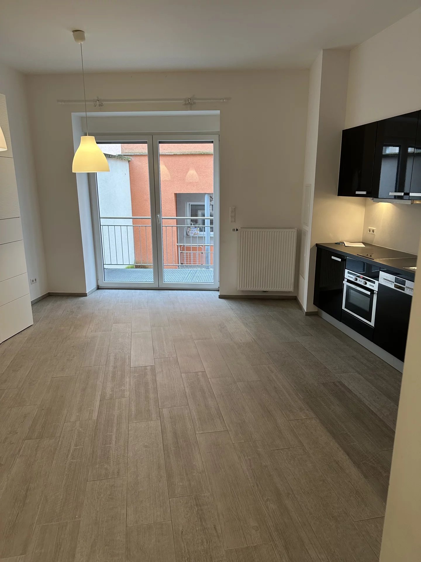 L'appartement est composé d'une grande pièce ouverte avec une cuisine équipée ouverte, une belle salle de bains équipée ave WC et d'un balcon.